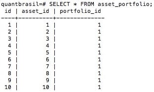 O próximo passo é popular a coluna com os IDs das carteiras. Faremos isso de forma análoga, importando a tabela portfolio em um dataframe portfolio_sql.
