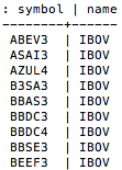 Prontinho! Nosso dataframe com os IDs relacionados à carteira do Ibovespa está pronto.